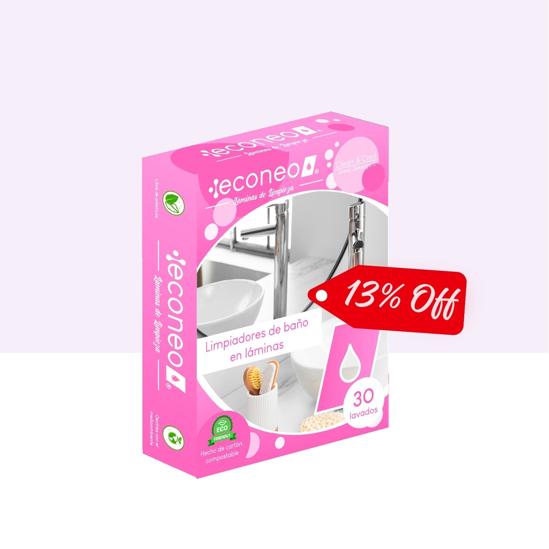 Haz que la limpieza del inodoro sea más fácil y eficiente con las Láminas Limpiadoras de Econeo. Nuestra fórmula innovadora se disuelve al contacto con el agua, ofreciendo una solución potente y conveniente.
